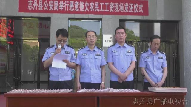 为了有力地震慑 “恶意欠薪”违法犯罪,极大地维护农民工的合法利益,增进社会各界和广大群众对公安工作的理解和支持。5月30日,县公安局在综合办公楼前举行恶意拖欠农民工工资发还仪式。公安局局长刘锦东、部分农民工代表及治安大队全体民警共计20余人参加。